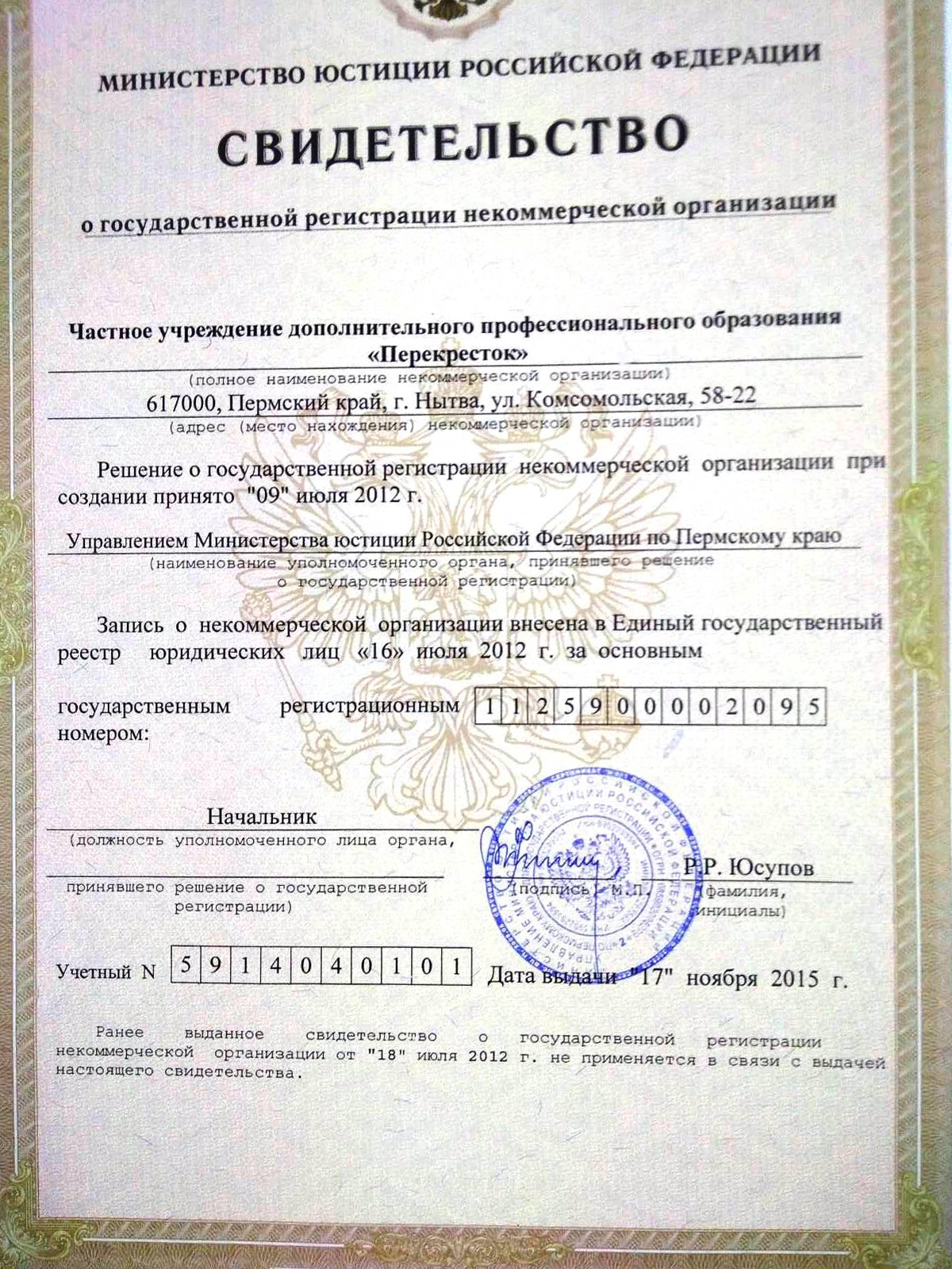 УСТАВЧастного учреждения дополнительного профессионального образования «ПЕРЕКРЕСТОК»г. Нытва 20201.ОБЩИЕ ПОЛОЖЕНИЯ1.1. Частное учреждение дополнительного профессионального образования «ПЕРЕКРЕСТОК», именуемое в дальнейшем «Образовательная организация», создано в соответствии с законодательством Российской Федерации для осуществления образовательной деятельности.
